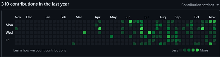 The following is a contribution that I have made to an open source VCS platform, namely Github, with 310 contributions in 2024.